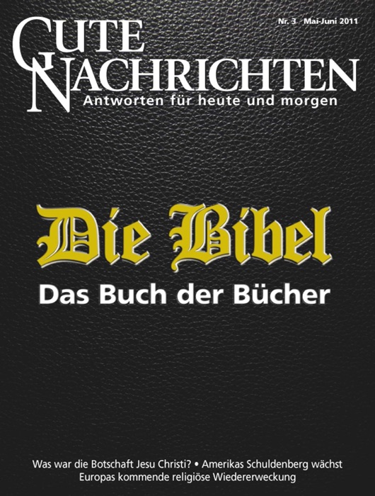 In dieser Ausgabe: Europas kommende religiöse Wiedererweckung. Die Bibel - das Wunder der Wunder! Was war die Botschaft Jesu Christi? Die Zeitschrift "Gute Nachrichten" bringt Fakten und Kommentare zum besseren Verständnis unserer Zeit, aus dem Blickwinkel der Bibel betrachtet. In "Gute Nachrichten" finden Sie Ratschläge für heute und eine positive Perspektive für morgen!